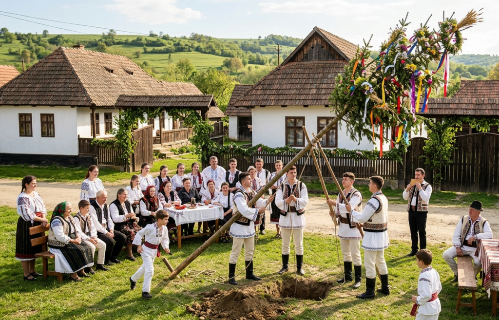 - Germania: Se respectă tradiția numită Maibaum, care implică ridicarea unui arbore decorat, similar cu Pomul nostru de Arminden.