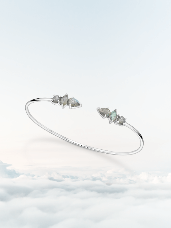 Așa cum zeița nopții pășește în tăcere pe cerul înstelat, Nyx aduce un strop de mister în fiecare mișcare a mâinii. Labradoritul, cunoscut pentru reflexiile sale hipnotice, este piatra intuiției și a protecției – un simbol al profunzimii feminine.