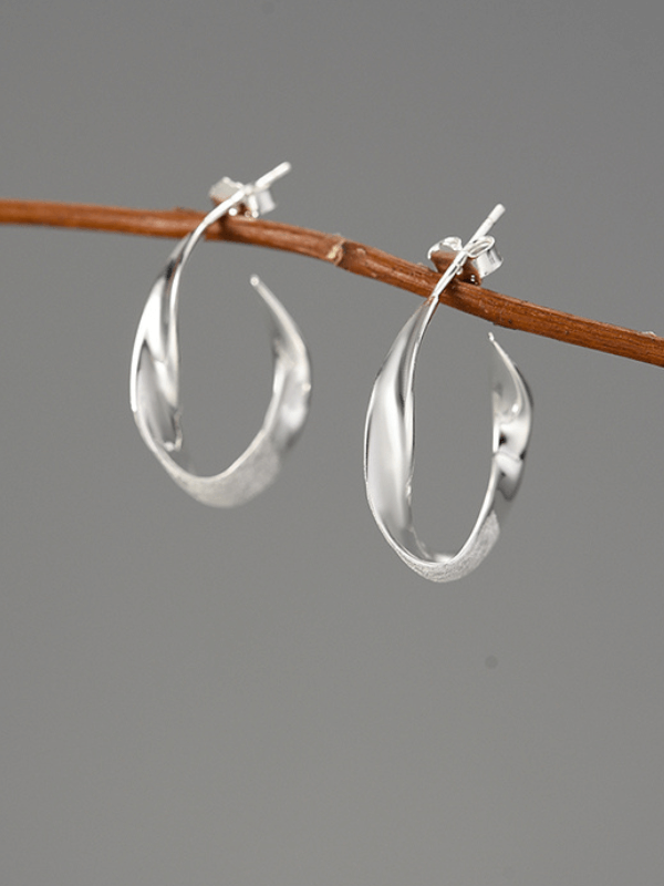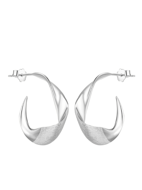 Cu un design inspirat de mișcarea fluidă a luminii, acești cercei se remarcă prin silueta curbată, unde suprafețele lucioase alternează armonios cu zonele mate. Jocul subtil de texturi adaugă profunzime și rafinament, creând un efect vizual care atrage și complimentează.