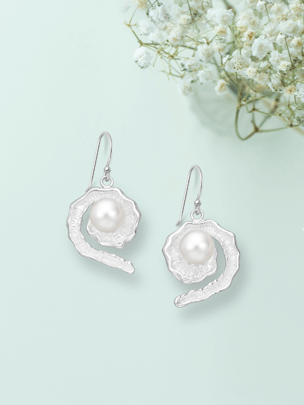 Cerceii Oceania te duc cu gândul la mișcarea lentă a valurilor și la strălucirea sidefată a scoicilor din care se nasc perlele. Forma spiralată, neregulată, amintește de fluiditatea mării, iar perla din centru devine inima acestei bijuterii – un simbol al feminității și al calmului interior.