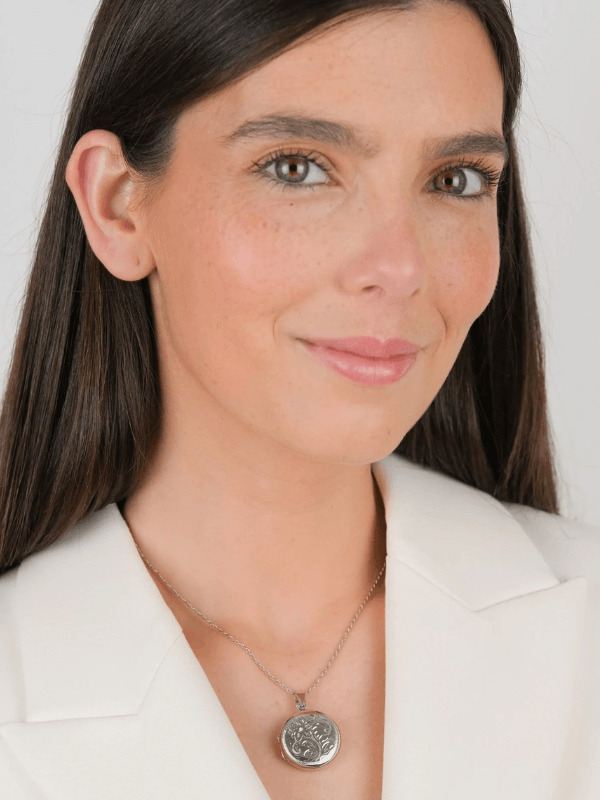 Fiecare medalion este gravat manual cu motive florale, transformând fiecare piesă într-una unică. Detaliile fine, atent lucrate de artizani, dau profunzime și personalitate bijuteriei.