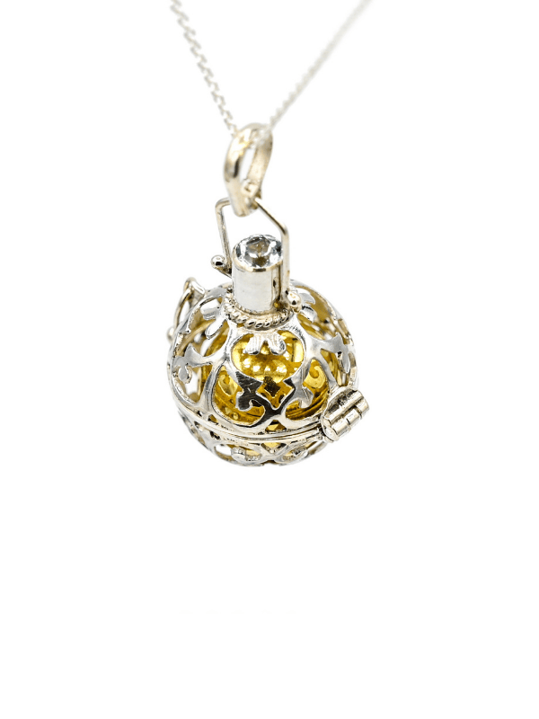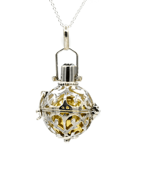 Făurit manual din argint 925 în Bali, acest pandantiv Dreamball păstrează viu spiritul vechii tradiții Harmony Ball – obiecte sonore sacre, purtate aproape de inimă pentru a induce calm și echilibru.